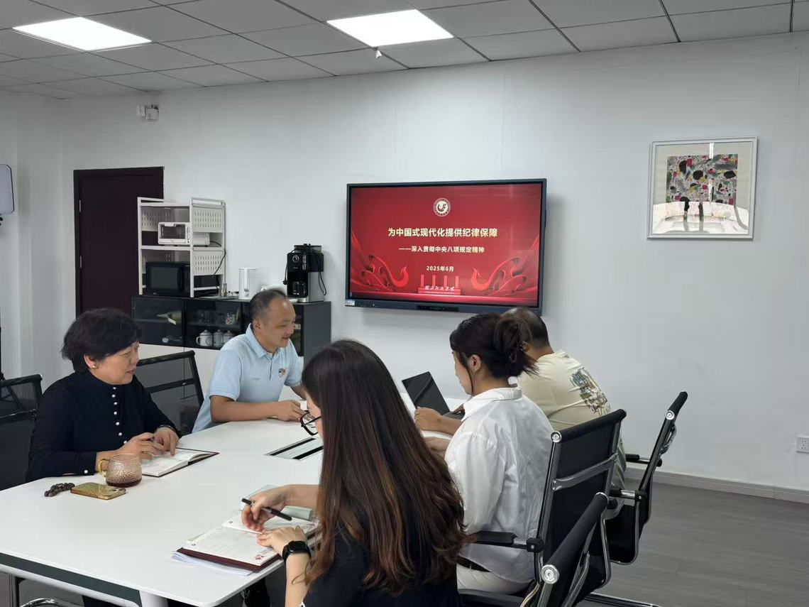 2025 年 6 月 23 日,公司党总支书记李勇担任主讲人,以《为中国式现代化提供纪律保障 —— 深入贯彻中央八项规定精神》为题,为公司党政领导班子以及支部全体党员讲授了专题党课。