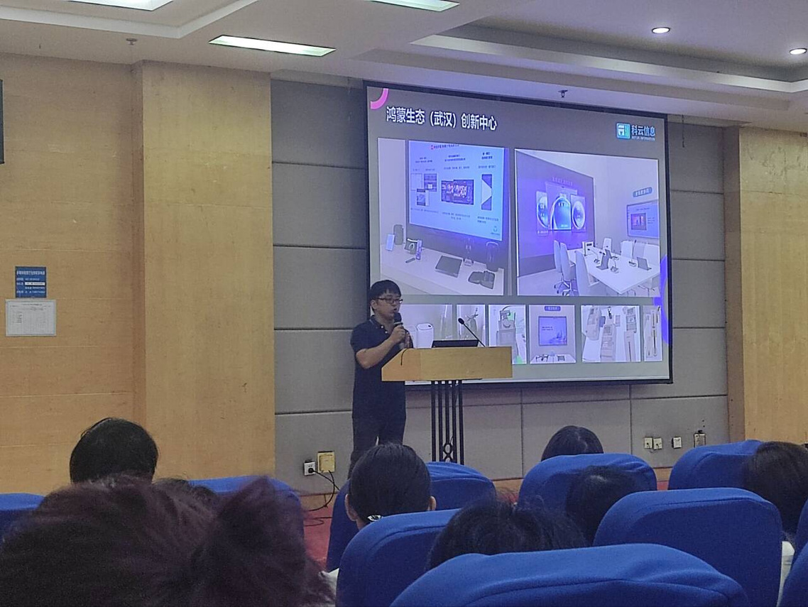 讲座中,杨涛老师系统介绍了HarmonyOS作为新一代万物互联智能终端操作系统的发展历程、技术架构与生态逻辑。他围绕“鸿蒙系统及应用场景”“鸿蒙发展及生态逻辑”“技术体系与系统能力”“鸿蒙生态与政策支持”四大主题,结合信创背景与数字化发展趋势,深入阐释了鸿蒙系统在打破设备孤岛、实现生态共享方面的核心价值,并展示了其在移动终端、智能穿戴、智慧屏等多场景下的应用前景。